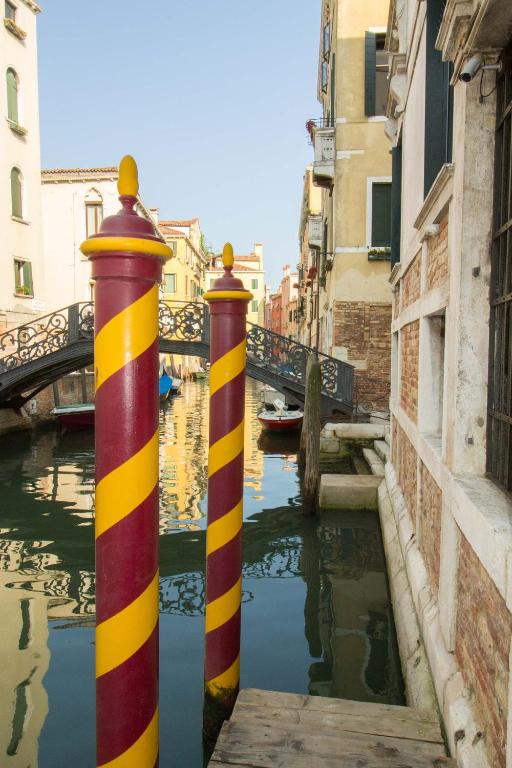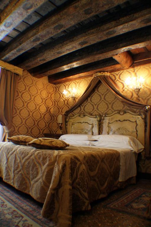 The Abadessa Palazzo’s public areas have Murano-glass lamps and Persian carpets. Guests can sip a drink in the bar while admiring views of the canal, and free Wi-Fi is available.